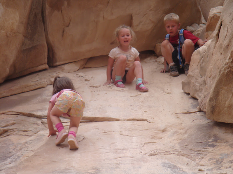 These two, in particular, really impressed me on the hike. Georgia was a bit whiny at first (there's about a mile-long stretch of dry, sandy wash to go through that's hard on the legs and the psyche), but as soon as she saw the first incline, she let out a whoop of "CAANNYYYOOONN!!!" and didn't slow down much for the rest of the hike. Ezra spent his time truckin' on while analyzing the best possible hiking routes. There was more than once that he didn't agree with the route Spencer dictated...turns out that, sometimes at least, he was right ;)
